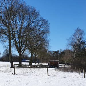 Half februari 2021 : Veel sneeuw en winterse temperaturen leveren mooie plaatsjes op bij de bijenkasten